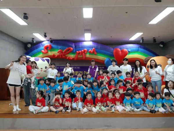 기능강화지원1팀에서 장애인식개선사업 ‘함께, 누리봄!’ 프로그램으로 5월 24일 금요일 복지관 4층 강당에서 삼막어린이집 어린이들과 사회성기술교육 해뜸반ㆍ밝음반 이용자 52명이 함께 미니운동회를 실시하였다. 미니운동회 과정에서 장애-비장애 아동 간의 자연스러운 신체적ㆍ정서적 상호작용 경험의 기회를 가졌고 팀미션 수행 및 다양한 활동(공굴리기/다람쥐 롤 굴리기/이구아나 달리기/색판뒤집기/2인3각/바톤이어달리기/줄다리기)을 함께하면서 서로 간의 배려와 고마움을 알고 유대감을 형성할 수 있는 좋은 기회가 되었다. 다양한 체육활동을 통해 부족한 운동량을 보충하고 심신을 단련할 수 있었으며, 사회성기술교육 보호자들도 함께하여 운동회 과정에서 아동의 활동 정도를 눈으로 관찰하는 계기가 되어 만족도 높았다. 장애-비장애 아동이 통합 파트너로써 서로 다르지 않음을 알고 장애인에 대한 인식개선의 기회가 되어 유익한 시간이었다.