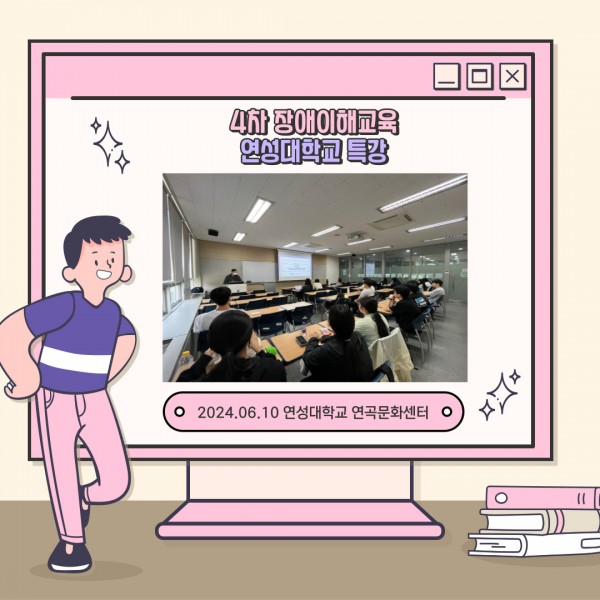 2024년 6월 10일(월) 연성대학교에서 취업(전공)동아리 아로새김 부원 20명을 대상으로 4차 장애이해교육이 진행되었습니다.
