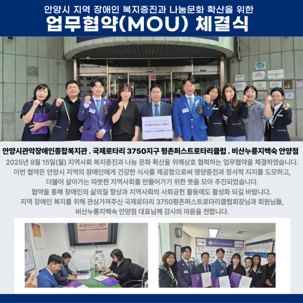 국제로타리 3750지구 평촌퍼스트로타리클럽 . 비산누룽지백숙 안양점 업무협약식