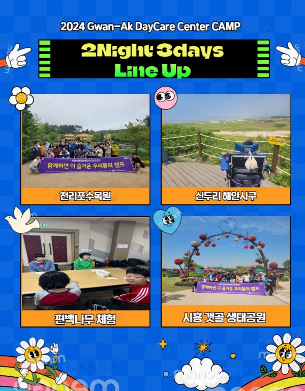 안양시관악장애인주간보호센터에서는 2024년 5월 20일부터 5월 22일까지 2박3일 일정으로