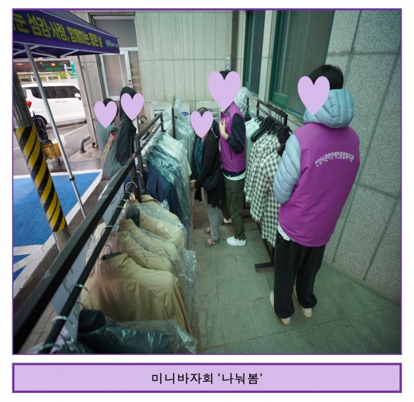 나눠봄 미니바자회에는 고급브랜드의 남성, 여성의류가 저렴한 가격에 판매가 되었으며 이용자 및 방문자들의 관심으로 많은 복지기금을 모금할 수 있었습니다.