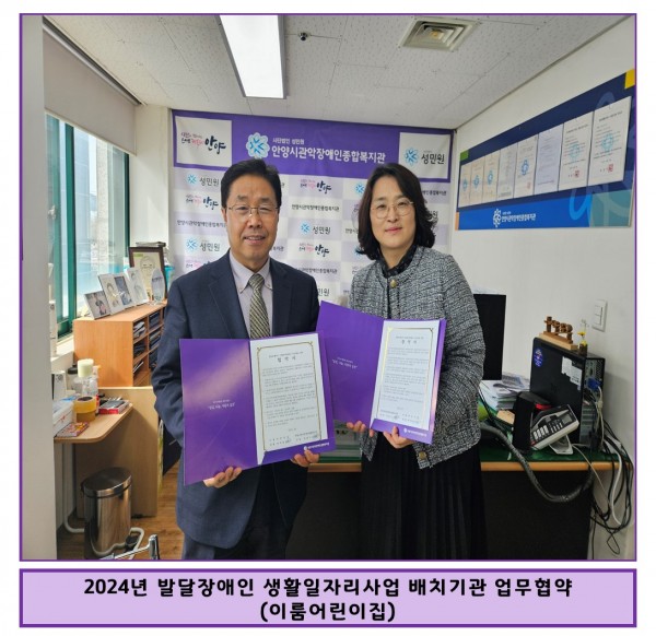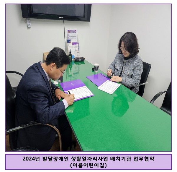 2024년 4월 4일 목요일, 이룸어린이집과 발달장애인 생활일자리사업 배치기관 업무 협약을 체결하였습니다.