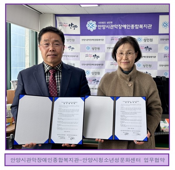 안양시관악장애인종합복지관(관장 박용구)과 안양시청소년성문화센터(센터장 박현숙)은 3월 19일 지역사회 성평등 문화 확산을 위한 업무협약을 체결했다.