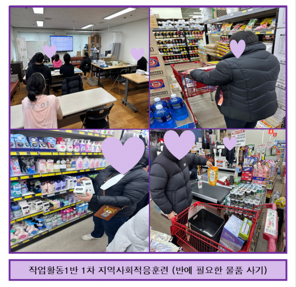 2024년 2월 19일(월) 작업활동1반은 '반에 필요한 물품 사기'라는 주제로 지역사회적응훈련을 진행하였습니다.