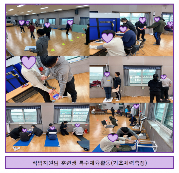 앞으로도 훈련생들의 기초체력증진을 위한 특수체육활동과 정기적으로 체력측정을 받을 수 있도록 조력할 예정입니다. *^-^*