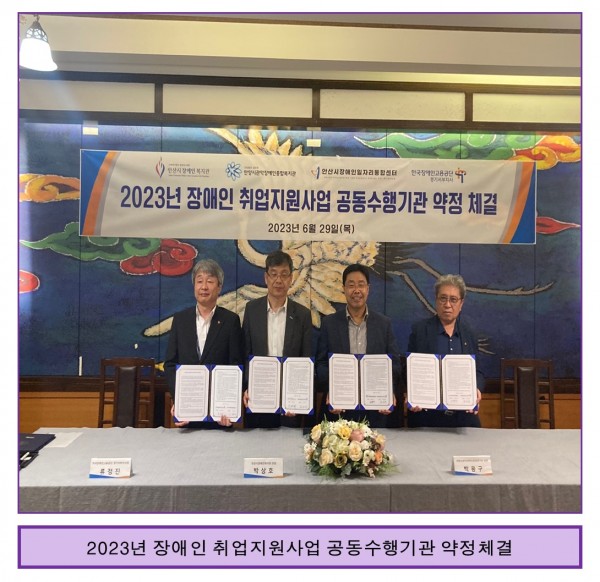 2023년 6월 29일(목) 한국장애인고용공단 경기서부지사와 2023년 장애인 취업지원사업 공동수행기관 약정 체결을 하였습니다.