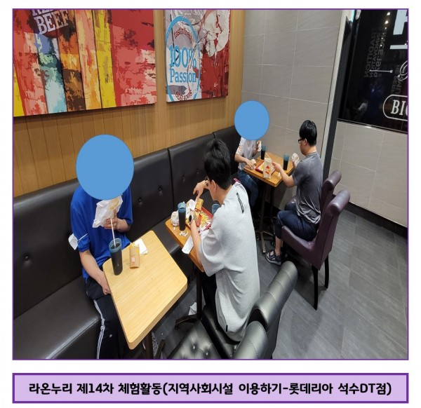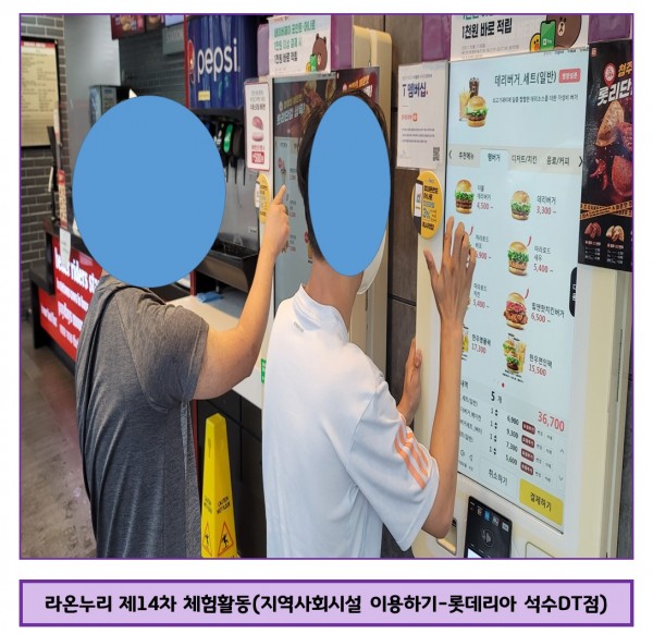 라온누리 제14차 체험활동 진행(지역사회시설 이용하기-롯데리아 석수DT점)