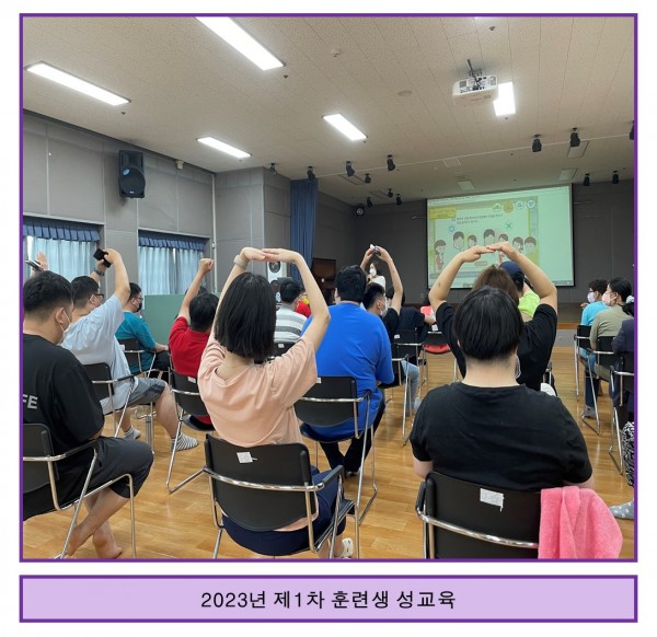 2023년 6월 15일 목요일 복지관 강당에서 박선희 강사님과 함께 1차 훈련생 성교육 진행하였습니다.