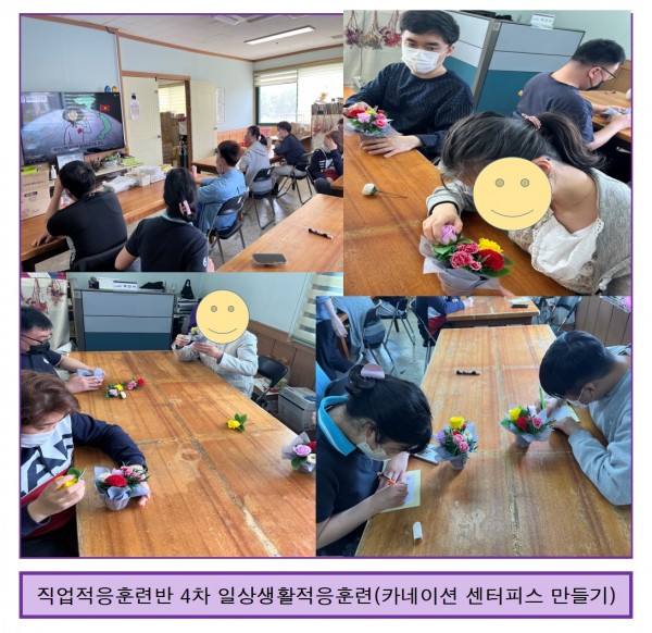 훈련생들은 준비된 재료로 카네이션 센터피스를 만들면서, 간단한 방법으로도 완성이 되는 것에 신기해하기도 하였습니다.