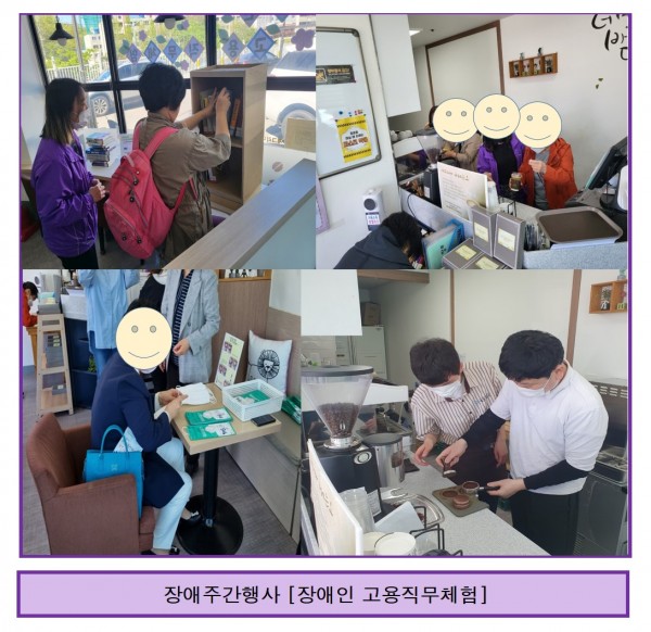바리스타/사서보조직/제조직 직무체험을 준비하였고, 발달장애인 바리스타와 직업지원팀 직원들이 함께 하였습니다.