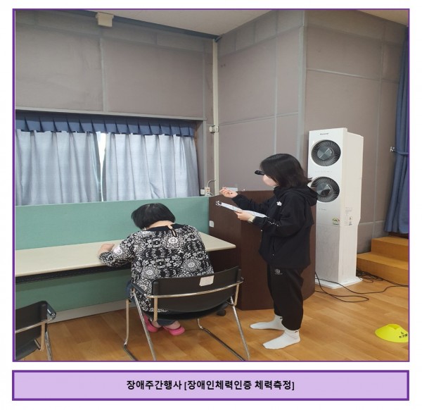 2023년 장애주간행사를 맞이하여 상담가족지원팀에서 경기도(군포) 장애인체력인증센터와 함께하여 장애인체력인증 체력측정을 진행하였습니다.
