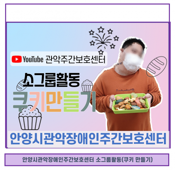 유튜브 채널 : #쿠키만들기#안양시관악장애인주간보호센터#관악주간보호센터#소그룹활동 - YouTube (클릭하면 영상 보기 가능)