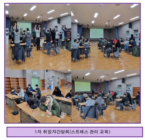 이후 간담회를 진행하였고 새로운 취업자 소개 및 스트레스 관리 교육을 통해 교류했던 내용에 대해 다시 나눠보는 시간을 가졌습니다. 앞으로도 취업자의 원활한 취업유지를 위해 더 좋은 활동으로 뵙도록 하겠습니다. 감사합니다^^