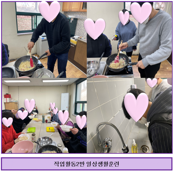 2023년 3월 17일(금) 작업활동2반 일상생활훈련으로 요리활동(베이컨크림파스타)을 만들어보았습니다.