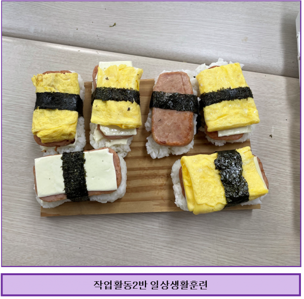 2023년 2월 23일(목) 작업활동2반 일상생활훈련으로 요리활동(무스비)를 만들어보았습니다.