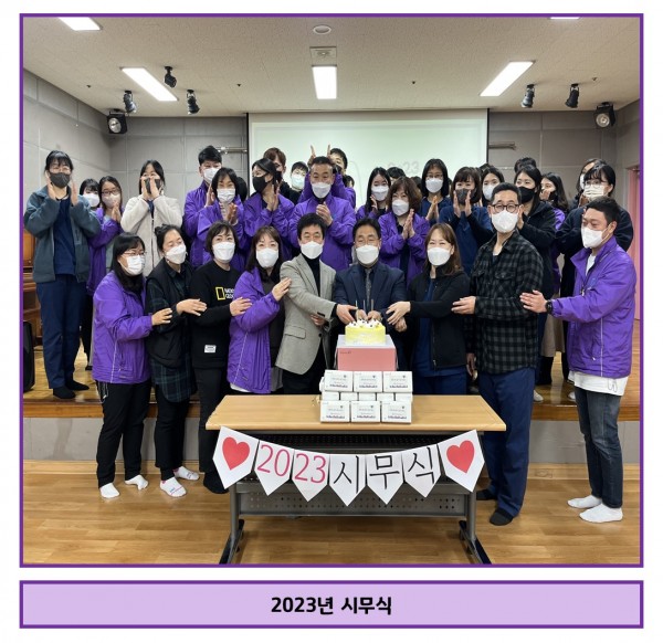 1월의 직원소식을 시작으로 2023년 주요 행사일정과 변경되는 직원 근무수칙을 공유하고, 관장님의 신년사와 케이크 커팅식으로 시무식이 마무리되었습니다.