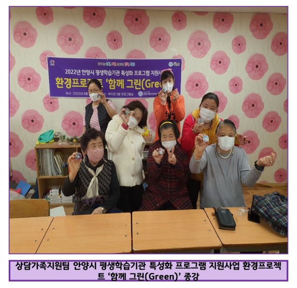 2022년 11월 24일(목) 안양시 평생학습기관 특성화 프로그램 지원사업 환경프로젝트 '함께 그린(Green)'이 15차시를 끝으로 종강을 맞이하게 되었습니다.