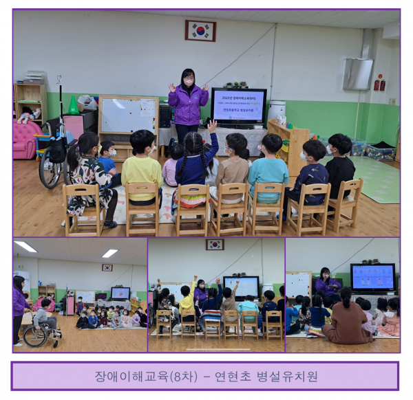 2022년 11월 10일(목) 오전 10시 연현초등학교 병설유치원 아동 19명을 대상으로 장애이해교육을 진행하였습니다.