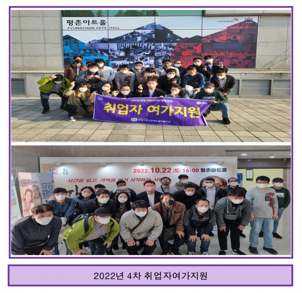 2022년 10월 22일(토) 4차 취업자여가지원을 진행하였습니다. 평촌 아트홀에 도착하여 연극 ’사랑해요, 당신‘을 관람하였으며