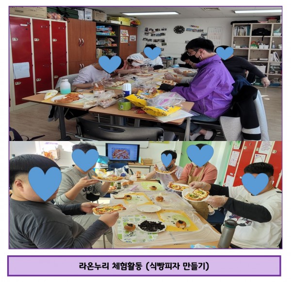 2022년 10월 18일(화) 라온누리교실에서 라온누리 체험활동을 진행하였습니다. 요리활동으로 ‘식빵 피자 만들기’를 진행하였습니다!