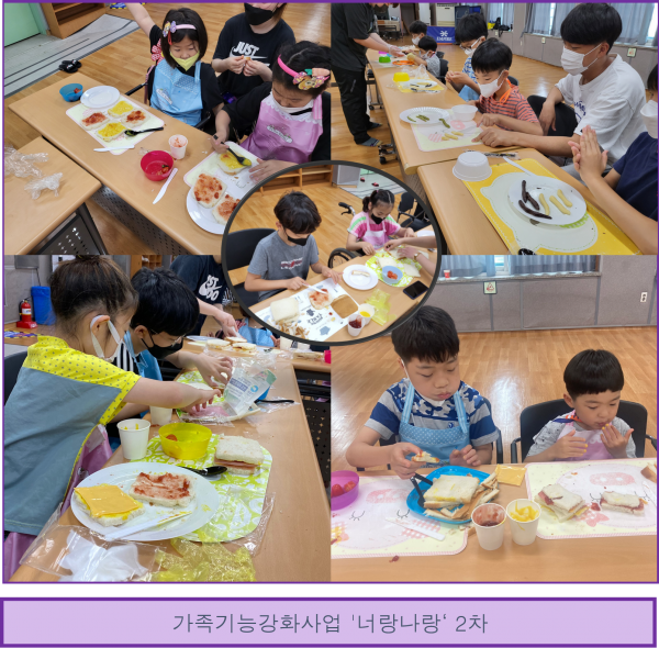 목록 2022년 가족기능강화사업 "너랑나랑" 2차 페이지 정보 운영자 조회 1,034 입력 2022-06-28 10:03 댓글 0 본문 2022년 6월 25일(토) 가족기능강화사업 너랑나랑 프로그램이 2차 진행되었습니다. 장애비장애형제자매가 함께 모여 쿠키와 샌드위치를 만들며 즐거운 시간을 보냈습니다.대림대학교 사회복지학과 학생들의 봉사활동으로 지역사회와 협력하고, 가족끼리 더 단단해지는 시간이었습니다. 목록 이전글2022년 1차 공동생활가정 부모간담회 2022.06.28 다음글2022년 직업지원팀 1차 훈련생 성교육 2022.06.27 댓글 0 댓글목록 등록된 댓글이 없습니다.