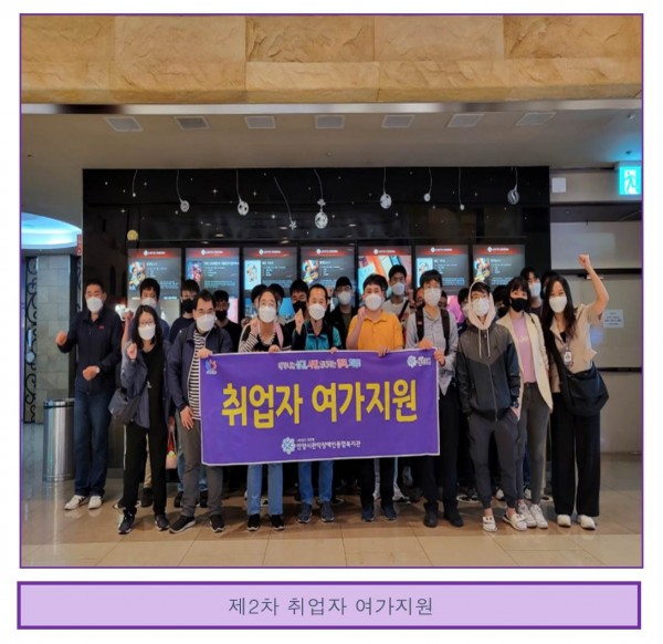 이번 여가지원 프로그램은 영화관람으로 진행하였습니다. 2가지 영화 중 취업자가 선호하는 영화를 직접 선택하여 즐겁게 관람하는 시간을 가졌습니다. 오랜만에 대면으로 진행하여 정말 많은 취업자가 참석했고 서로 즐겁게 이야기를 나눌 수 있었습니다. 앞으로도 많은 관심 가져주세요~^^