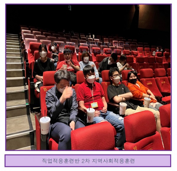 오랜만에 대중교통을 이용하여 영화관에 방문하였습니다. 다같이 최신 개봉된 영화를 보며 즐거운 시간 보냈고, 답답했던 생활에 조금이나마 힐링되는 시간이었습니다. 훈련생들도 너무 오랜만에 설레이고 재미있었다며 다음에 또 보러 가자고 하였습니다. 앞으로도 직업지원팀에서는 훈련생들의 다양한 문화생활의 기회를 제공하기 위하여 노력하겠습니다~^^