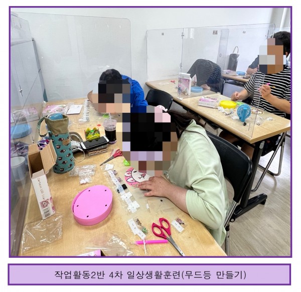 2022년 6월 9(목) 작업활동2반 일상생활훈련의 일환으로 무드등 만들기 진행하였습니다.