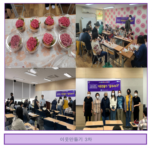 목록 이웃만들기 3차 페이지 정보 운영자 조회 1,118 입력 2022-05-13 10:52 댓글 0 본문 2022년 5월 11일(수) 장애인식개선사업 이웃만들기가 3차 진행되었습니다~ 카네이션 앙금 컵케익을 만들었습니다! 제각기 다른 모양의 꽃이지만 하나하나 모두 예쁜 꽃이었고 맛있는 컵케익이었답니다. 고마운 사람, 이웃과 만든 음식을 나누며 더욱 뜻깊은 시간을 보냈습니다! 목록 이전글스승의 날 행사 2022.05.13 다음글직업지원팀 체육활동(작업활동1반, 직업적응훈련반) 2022.05.13 댓글 0 댓글목록 등록된 댓글이 없습니다.