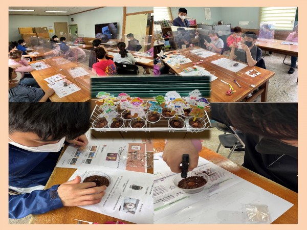 각자 흙에 씨드볼을 심고 물을 주며, 방울토마토가 잘 자랄 수 있도록 지속적인 관심과 긍정의 메시지를 전달해보려고 합니다.