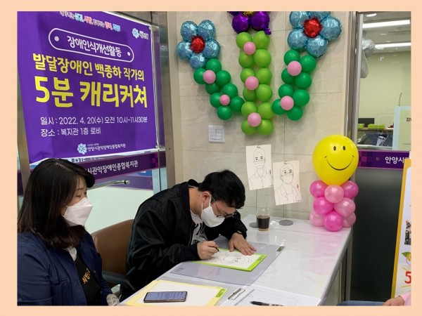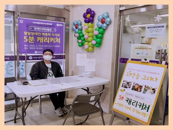 2022년 4월 20일(수) 장애인의 날 복지관 로비에서 백종하 작가의 재능기부로 5분 캐리커쳐 활동이 진행되었습니다.