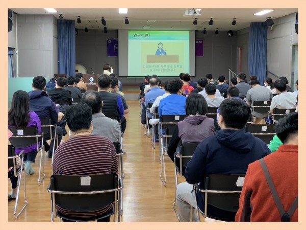 2022년 4월 21일(목) 오전 10시 복지관 4층 강당에서 복지관 이용자 대상 인권교육을 실시하였습니다.