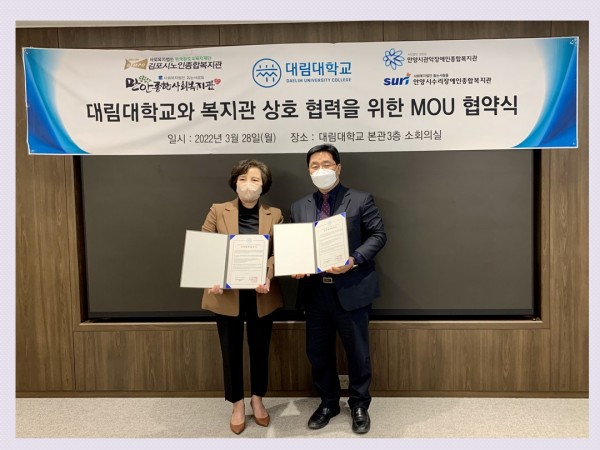 2022년 3월 28일(월) 안양시관악장애인종합복지관은 대림대학교 대학본부 내 회의실에서 산학협력 협약식을 진행했습니다^^