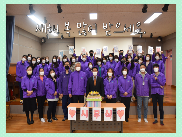 우리복지관에서는 새해 영상상영을 시작으로 관장님 신년사, 새해맞이 케잌커팅식을 진행하였고 새해를 맞이하여 서로 축복의 인사를 나누며 시무식을 가졌습니다.