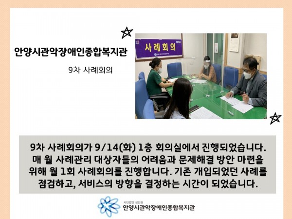 목록 2021년 9차 사례회의 진행 페이지 정보 양정은 조회 1,280 입력 2021-09-23 16:33 댓글 0 본문 목록 이전글안양시장애인식개선사업- 이웃만들기(4차) 2021.09.23 다음글2021년 9차 부모월례회의 2021.09.23 댓글 0 댓글목록 등록된 댓글이 없습니다.
