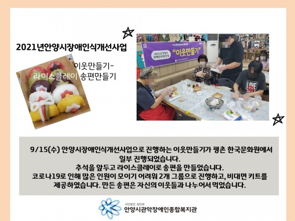 목록 안양시장애인식개선사업- 이웃만들기(4차) 페이지 정보 양정은 조회 1,302 입력 2021-09-23 16:34 댓글 0 본문 목록 이전글2021년 가족기능강화사업- 가족나들이 2021.09.23 다음글2021년 9차 사례회의 진행 2021.09.23 댓글 0 댓글목록 등록된 댓글이 없습니다.