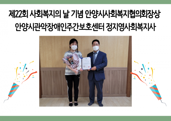 제22회 사회복지의 날 기념 안양시사회복지협의회장상 수상(안양시관악장애인주간보호센터)
