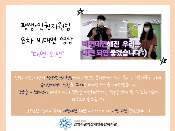 목록 데면데면해진 우리, 이제는 대면이 되서 만나요! 페이지 정보 운영자 조회 1,421 입력 2021-09-16 14:14 댓글 0 본문 유튜브 링크 : https://youtu.be/FCCoSwoJs6E 많은 구독과 시청부탁드립니다~ 목록 이전글[직업교육] 나도 바리스타 4탄: 뒷정리 및 카페 마감 2021.09.17 다음글평생인권지원팀 7차 비대면 서비스 ‘zoom영상수업’ 2021.09.16 댓글 0 댓글목록 등록된 댓글이 없습니다.