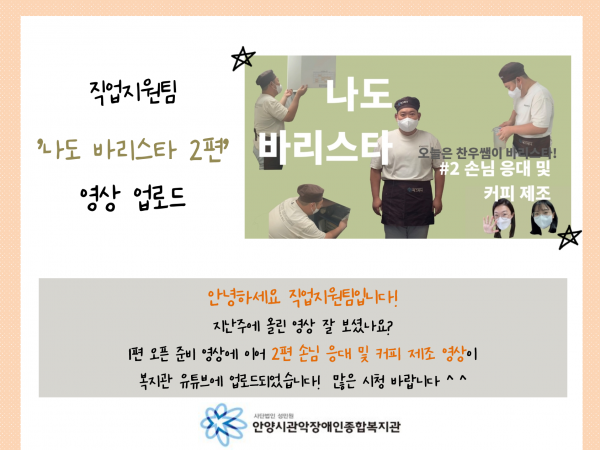 목록 직업지원팀 나도 바리스타 2탄 업로드 페이지 정보 운영자 조회 1,449 입력 2021-09-01 11:47 댓글 0 본문 목록 이전글평생교육 추천 콘텐츠 발달장애인 일상생활교육 "광훈씨의 하루 2편" 2021.09.01 다음글평생교육 추천 콘텐츠 발달장애인 일상생활교육 "광훈씨의 하루" 2021.08.30 댓글 0 댓글목록 등록된 댓글이 없습니다.