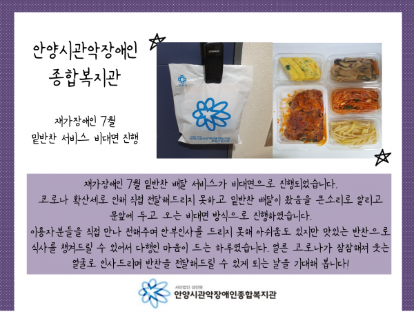 목록 재가장애인 7월 밑반찬 서비스 비대면 진행 페이지 정보 운영자 조회 1,569 입력 2021-08-04 16:21 댓글 0 본문 목록 이전글경기도(안양시) 슐런 대표 선발전 2021.08.06 다음글사례관리 대상자 해피빈 모금 완료! 2021.08.04 댓글 0 댓글목록 등록된 댓글이 없습니다.