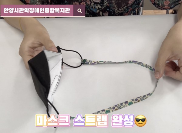 키트 안에 있는 “마스크 스트랩 만들기” 영상을 복지관 유튜브에 올려놓았으니 영상을 보고 잘 따라해보세요~ :)