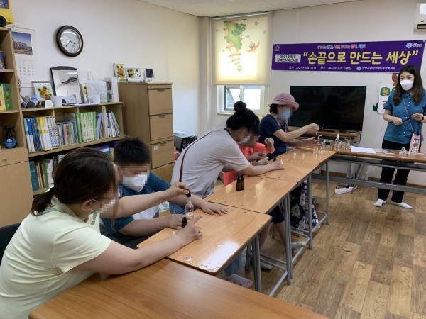2021년 안양시장애인식개선사업 ‘손끝으로 만드는 세상’에서는 지난 6월 9일(수) 참여하는 장애인들이 직접 강사가 되어, 장애 초등학생을 대상으로 미니방향제를 만드는 재능기부 활동을 진행하였습니다.