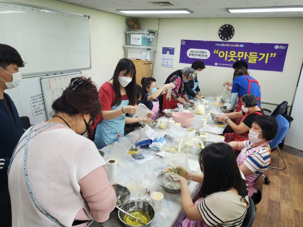 이웃만들기는 요리를 완성하며 성공의 기쁨을 느끼고 만든 음식을 이웃에게 나누며 나눔의 기쁨과 자존감 향상을 위한 프로그램입니다.