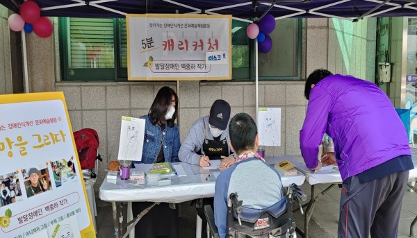 목록 '찾아가는 장애인식개선 문화활동 희망을 그리다'를 진행 페이지 정보 운영자 조회 1,634 입력 2021-04-21 10:22 댓글 0 본문 20(화) 제41회 장애인의 날을 맞이하여 '찾아가는 장애인식개선 문화활동 희망을 그리다'를 진행하였습니다. 많은 주민분들과 이용자, 직원들이 발달장애인 작가의 문화·예술활동을 통해 장애인에 대한 인식을 개선하는 행사가 되었습니다. (발달장애인 백종하 작가) 목록 이전글장애인식개선캠페인 진행 2021.04.22 다음글문화예술 장애인식개선교육진행 2021.04.21 댓글 0 댓글목록 등록된 댓글이 없습니다.
