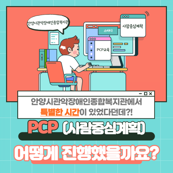 우리 복지관에서는 2021년 신규 연구사업으로 장애인의 인권보장과 자기결정권을 존중하자는 의미로서 PCP(person centered planning)_사람중심계획을 진행해보려고 합니다. 앞으로 우리 복지관을 대표하는 멋진 PCP 진행자들과 함께 장애인 당사자들의 보다 나은 행복한 삶을 위해 연구하도록 하겠습니다. 오늘은 첫 오리엔테이션을 진행하였고, 앞으로 더욱더 발전된 모습으로 인사드리겠습니다. 많은 응원 부탁드려용~^^