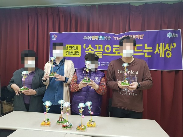 목록 안양시장애인식개선사업 '손끝으로 만드는 세상' 15차 프로그램 진행 페이지 정보 운영자 조회 1,620 입력 2020-11-20 11:30 댓글 0 본문 11월19일 복지관 지하 다목적1실에서 안양시장애인식개선사업 '손끝으로 만드는 세상' 15차 프로그램 진행했습니다. ‘공기정화 스칸디아모스’와 ‘반짝반짝 홀로그램 장미’를 활용해 꾸미기를 하며 즐거운 여가시간을 보냈습니다~ 목록 이전글2020년도 인플루엔자 무료 예방접종 실시 2020.11.20 다음글활동지원 제공기관 간담회 2020.11.20 댓글 0 댓글목록 등록된 댓글이 없습니다.