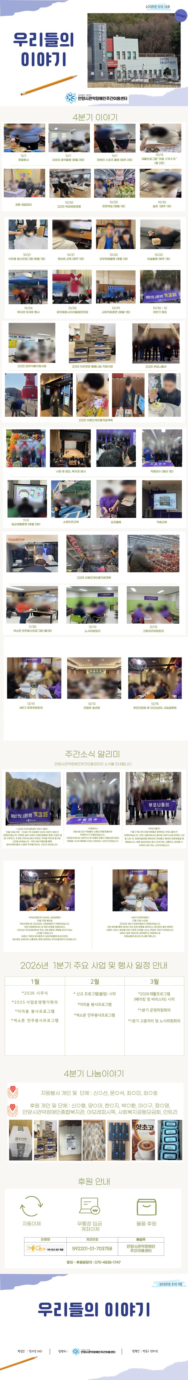 한 해 동안 보내주신 관심과 성원에 깊이 감사드리며, 다가오는 2026년에도 보다 알찬 사업과 다양한 프로그램으로
