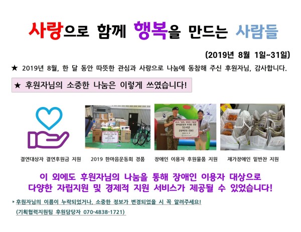 목록 8월 후원이야기 페이지 정보 이민영 조회 1,354 입력 2019-09-16 18:15 댓글 0 본문 목록 이전글2019 한마음운동회 후원자후원단체 명단 2019.09.27 다음글동안구보건소 후원물품 전달 2019.09.11 댓글 0 댓글목록 등록된 댓글이 없습니다.