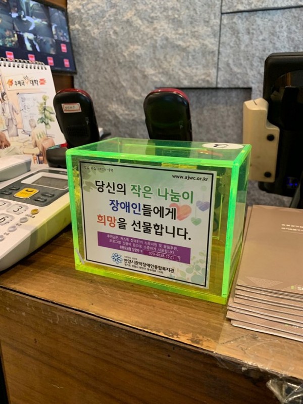 맛있게 드시고 계산대에 위치한 복지관 모금함에도 정성껏 기부해주시는 센스도 부탁드려요!
