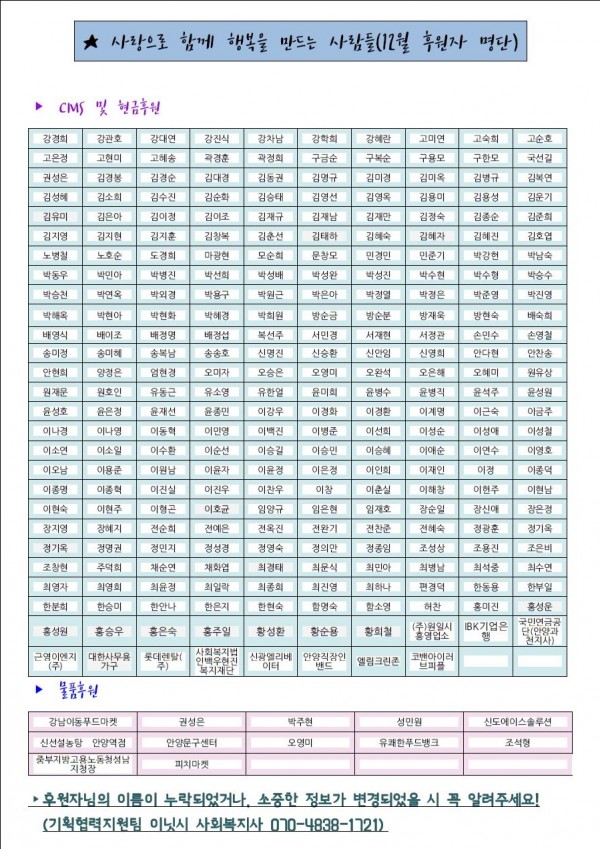 목록 12월 후원이야기 페이지 정보 이닛시 조회 1,377 입력 2019-01-08 09:58 댓글 0 본문 목록 이전글<신규모금함 업체소개> 2019.01.08 다음글백우현진복지재단 후원감사패 전달식 2018.12.27 댓글 0 댓글목록 등록된 댓글이 없습니다.